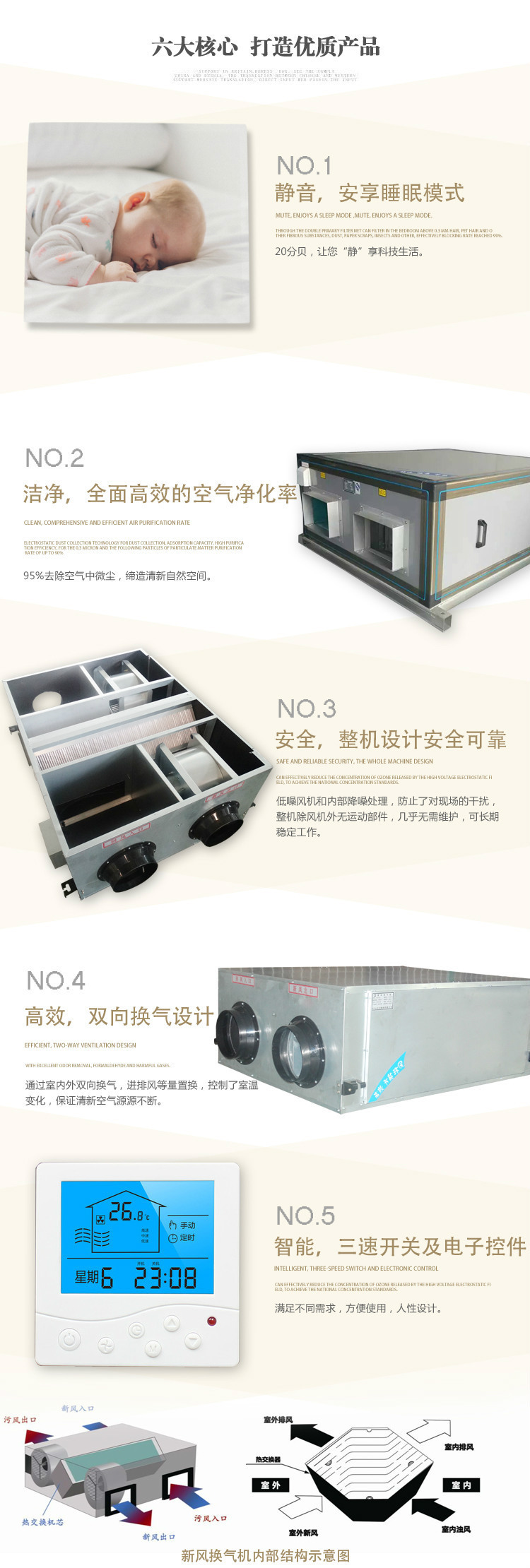 新風(fēng)換氣機(jī)是根據(jù)在密閉的室內(nèi)一側(cè)送風(fēng)另一側(cè)引風(fēng),則在室內(nèi)會形成“新風(fēng)流動場”的原理進(jìn)行設(shè)計研制的。它依靠機(jī)械送風(fēng)、引風(fēng),強迫在系統(tǒng)內(nèi)形成新風(fēng)流動場。是一種時刻保持室內(nèi)空氣潔凈清新的新型環(huán)保電器。這種獨立的室內(nèi)空氣置換、凈化循環(huán)系統(tǒng),能在排除室內(nèi)的污染空氣的同時,輸入自然新鮮空氣,將輸入室內(nèi)的新風(fēng)先經(jīng)過濾、殺菌、加熱、增氧等多項處理。